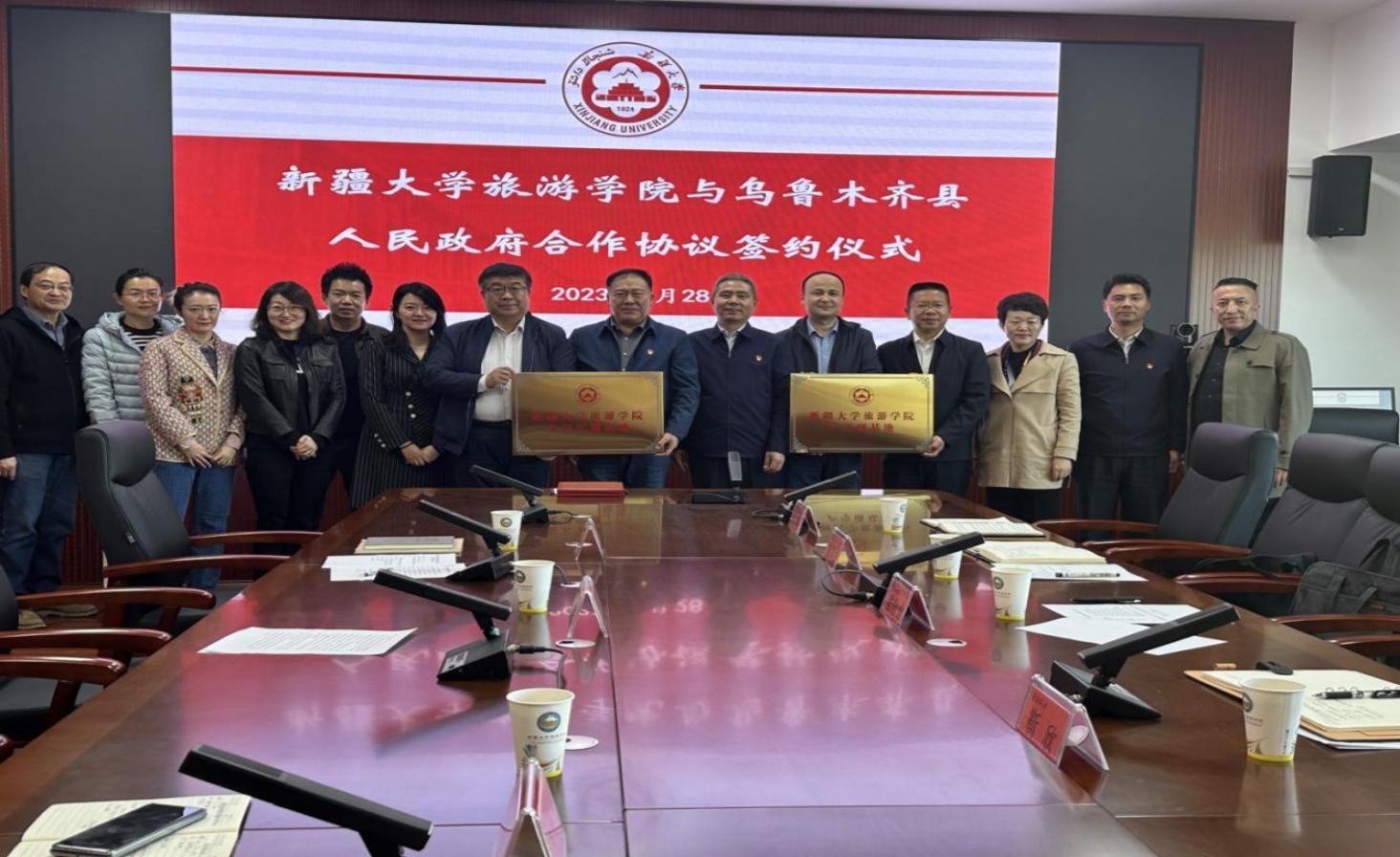 会议结束后,双方还举行了304永利实习实训基地和304永利产学研基地授牌仪式。双方还就乌鲁木齐县旅游产业高质量发展、人才培养、文旅融合、农旅融合发展和促进校政合作成果转化等进行了深入探讨和交流,并达成一致共识。