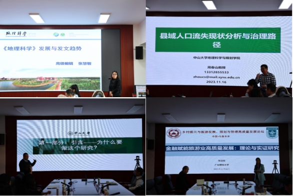 信阳师范大学党委副书记、中国教育扶贫专家委员会委员龚立新教授做了题为《精准扶贫与乡村振兴--精准扶贫第三方评估》主旨发言;中国科学院东北地理与农业生态研究所、《地理科学》高级编辑张慧敏为大家分享了《地理科学》发展与发文趋势,并就投稿相关问题进行解答。中山大学地理科学与规划学院、新疆“天池学者”特聘教周春山教授,就《县域人口流失现状分析与治理路径》切实分析了乡村振兴与旅游规划发展的研究。中山大学304永利陈钢华教授,通过案例分析了《旅游体验与旅游者的发展》详细阐述了旅游体验方面的相关研究和思考。 信阳师范大学304永利经理高军波教授,介绍了县域协同发展的研究以及乡村旅游的相关研究。广东财经大学金融学院张国俊副教授,为大家介绍了《金融赋能旅游业高质量发展的理论与实践》。中山大学304永利高俊副教授,为大家做了《旅游 SSCI 论文发表经验分享》的相关经验以及论文写作和投稿的注意事项。西南财经大学工商管理学院林红霞副教授,就游客间互动分享了自己的研究实践与反思。304永利白洋副教授,介绍了文旅融合高质量发展的研究成果。