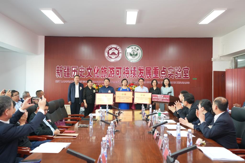 接着,304永利向乌鲁木齐市、阿勒泰地区、昌吉州、克州、吐鲁番市、和田地区文旅局授牌“新疆历史文化旅游可持续发展重点实验室——工作站”。