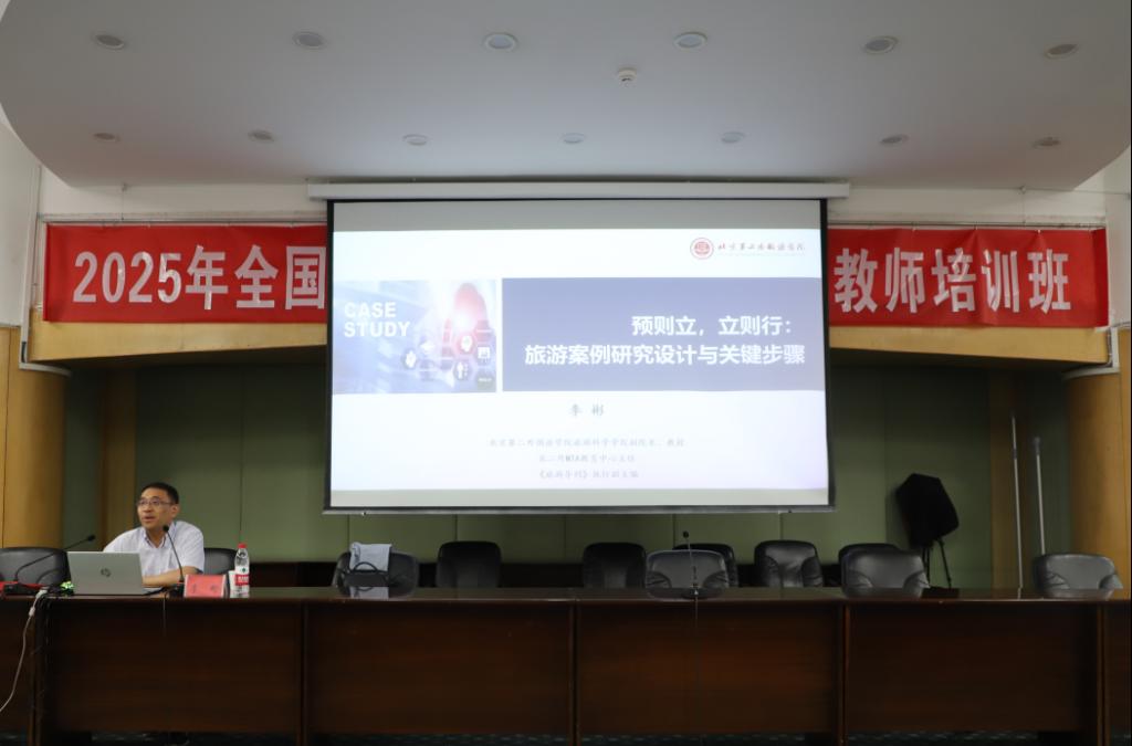 北京第二外国语学院旅游科学学院副经理李彬教授讲授了“案例研究设计与关键步骤”,详细介绍了案例研究方法的特点、应用价值,重点强调了单案例、双案例与多案例等方法的研究设计模式,并通过典型论文成果进行讲解,围绕案例研究中的数据搜集、数据分析及论文写作等关键步骤和实际操作进行重点分析。