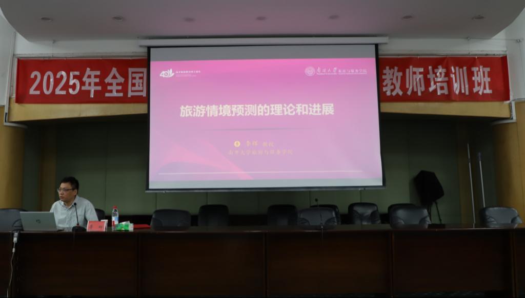 南开大学旅游与服务学院副经理李辉教授讲授了“旅游预测研究方法与应用”,课程涉及预测概念、机器学习视角的预测、常用预测模型、预测建模构建路径等;强调了情境预测理论着重从任务情境预测和事件情境预测两个层面开展讨论分析;通过具体案例分析了应用中具体考虑了旅游企业情境建模预测、趋势中断与旅游企业恢复预测、事件变量与旅游企业发展预测、情境变量与旅游企业发展预测等不同的旅游预测场景。