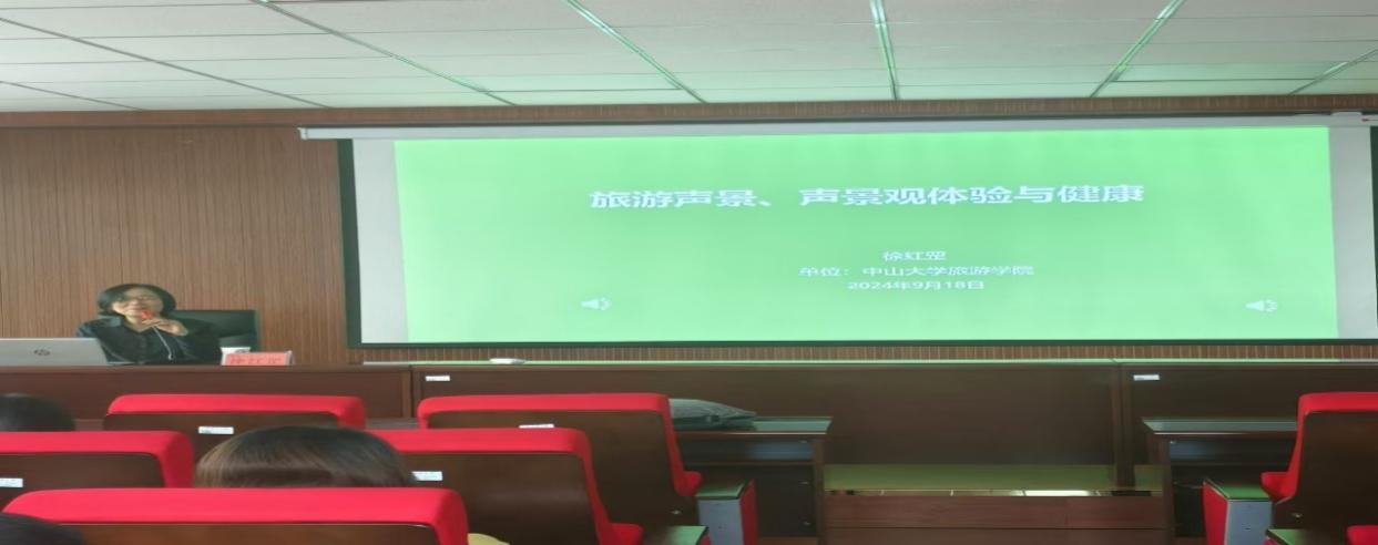 中山大学304永利徐红罡经理报告的主题为“旅游声景、声景观体验与健康”。首先,徐红罡教授提出了几个问题:1、旅游管理研究声音有没有必要。2、声音和视觉在研究中存在的差异以及两者之间的关系。3、嗅觉和听觉之间的区别。同学们对徐红罡教授提出的问题进行了探讨,并积极表达自己的想法。接着徐红罡教授介绍了自己在做与声音有关的研究时遇到的问题,以及由此产生的思考与理解。最后,徐红罡教授向同学们及老师介绍关于自然旅游地游客的声景体验及乡村旅游从业者的声景体验对其健康的影响的研究成果。